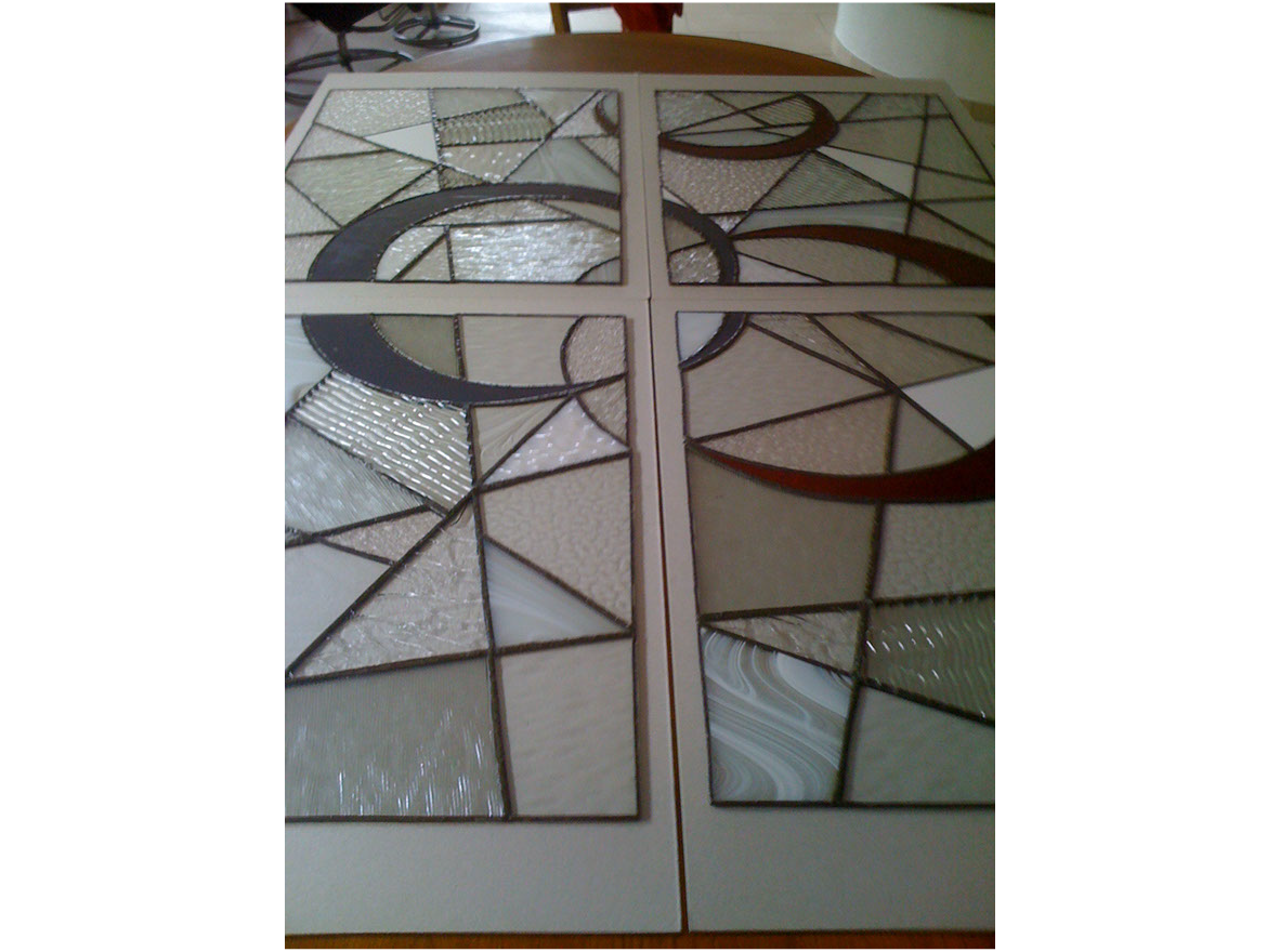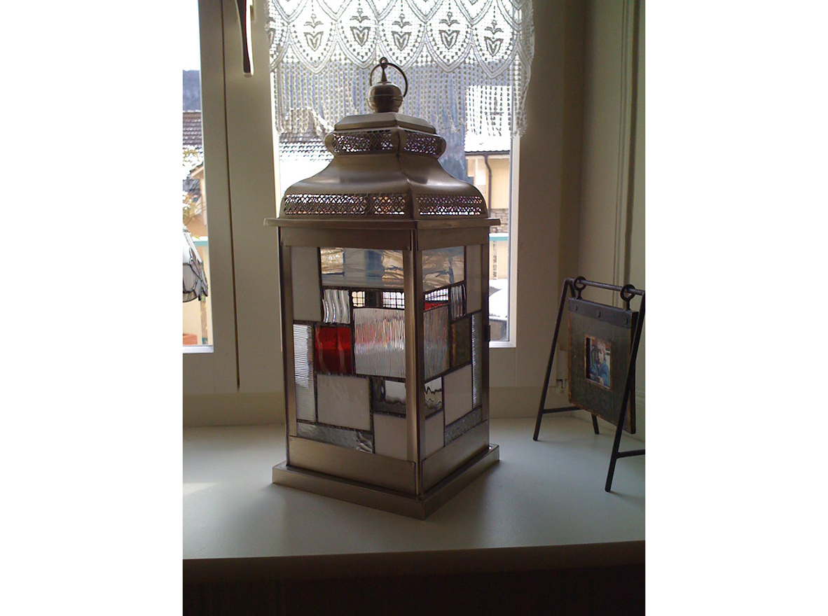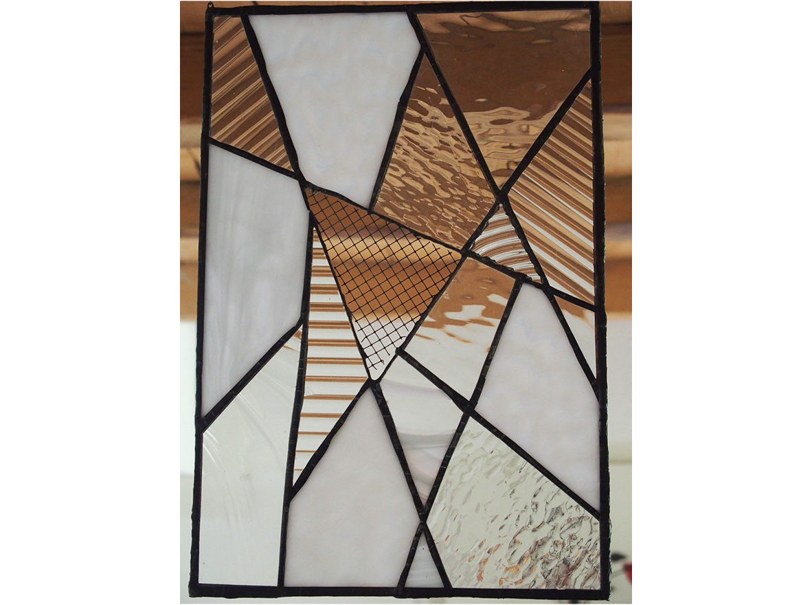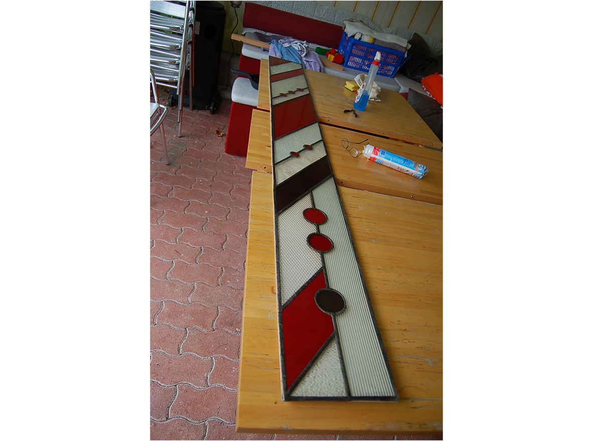 à enrubanner le contour de chaque pièce de verre à l'aide d'une mince bande de cuivre, permettant ainsi de souder directement les morceaux de verre entre eux.