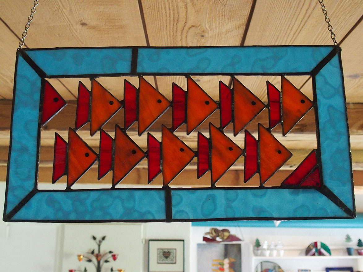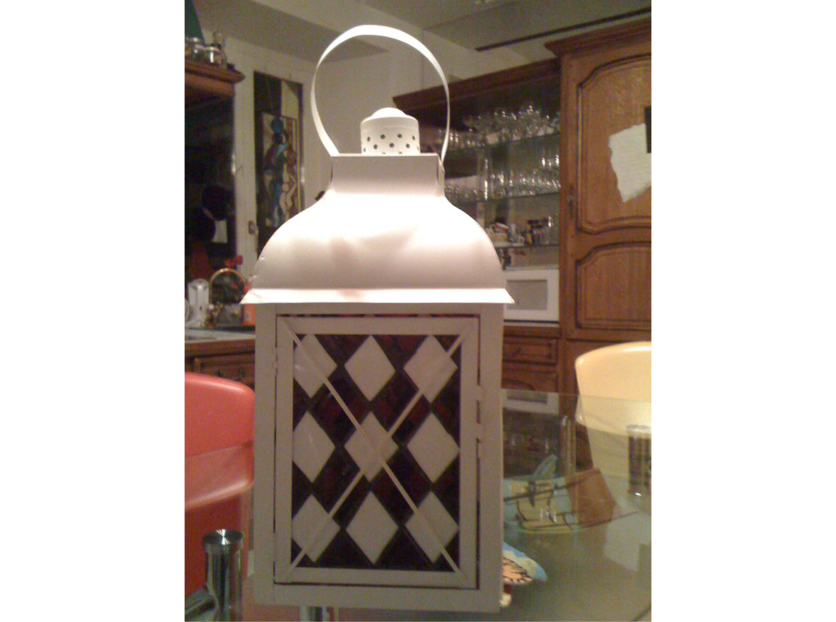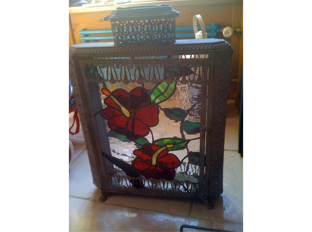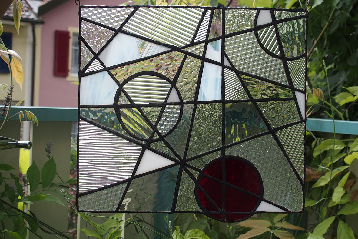 à enrubanner le contour de chaque pièce de verre à l'aide d'une mince bande de cuivre, permettant ainsi de souder directement les morceaux de verre entre eux.