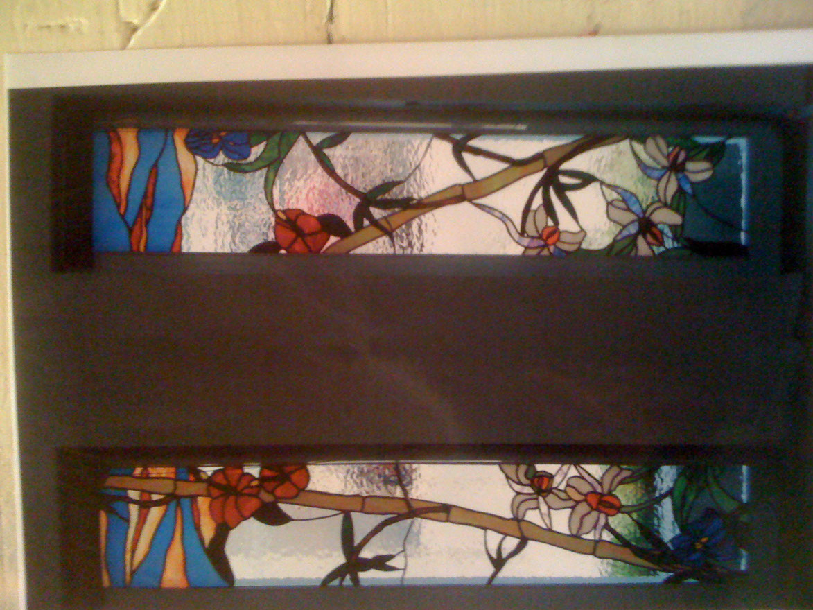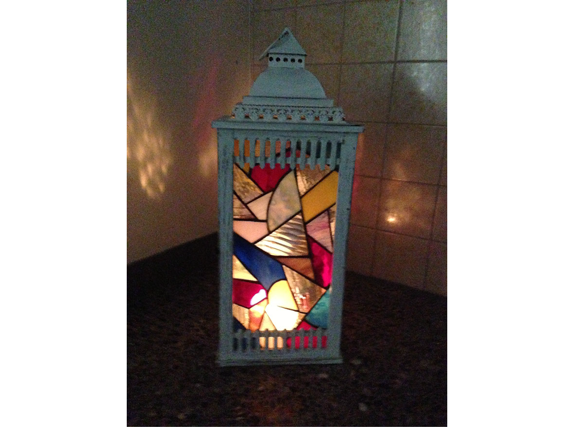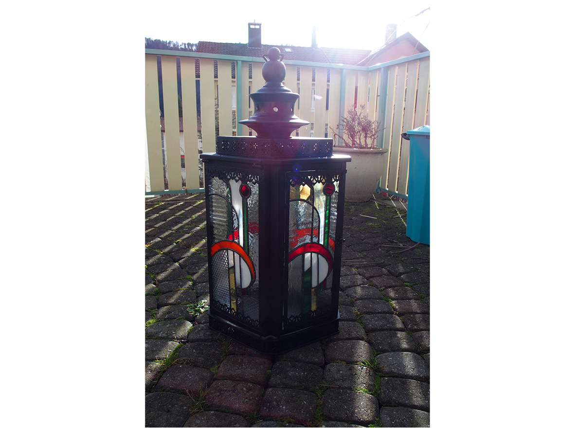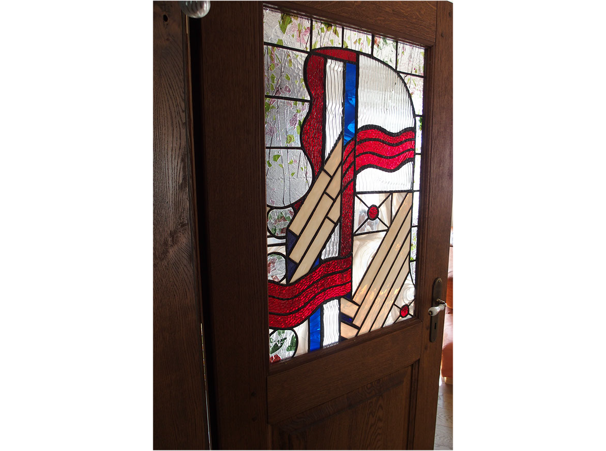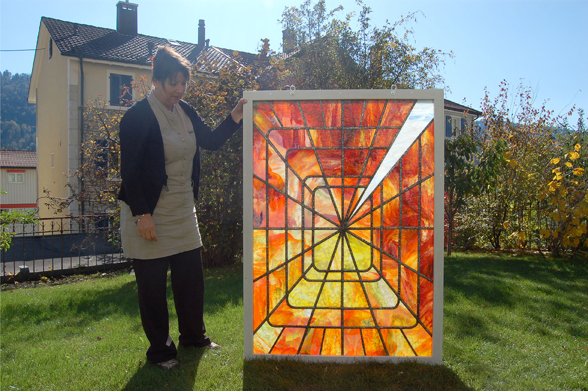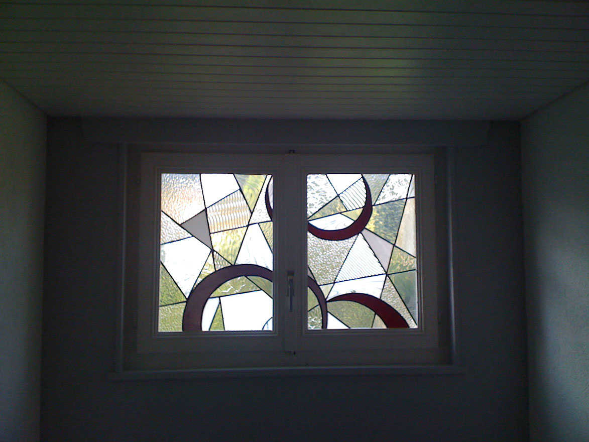 Le vitrail prend vie avec la lumière, dès que le soleil se couche, les lampes prennent