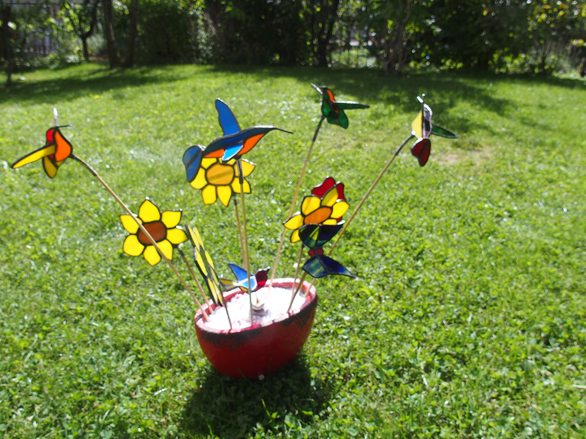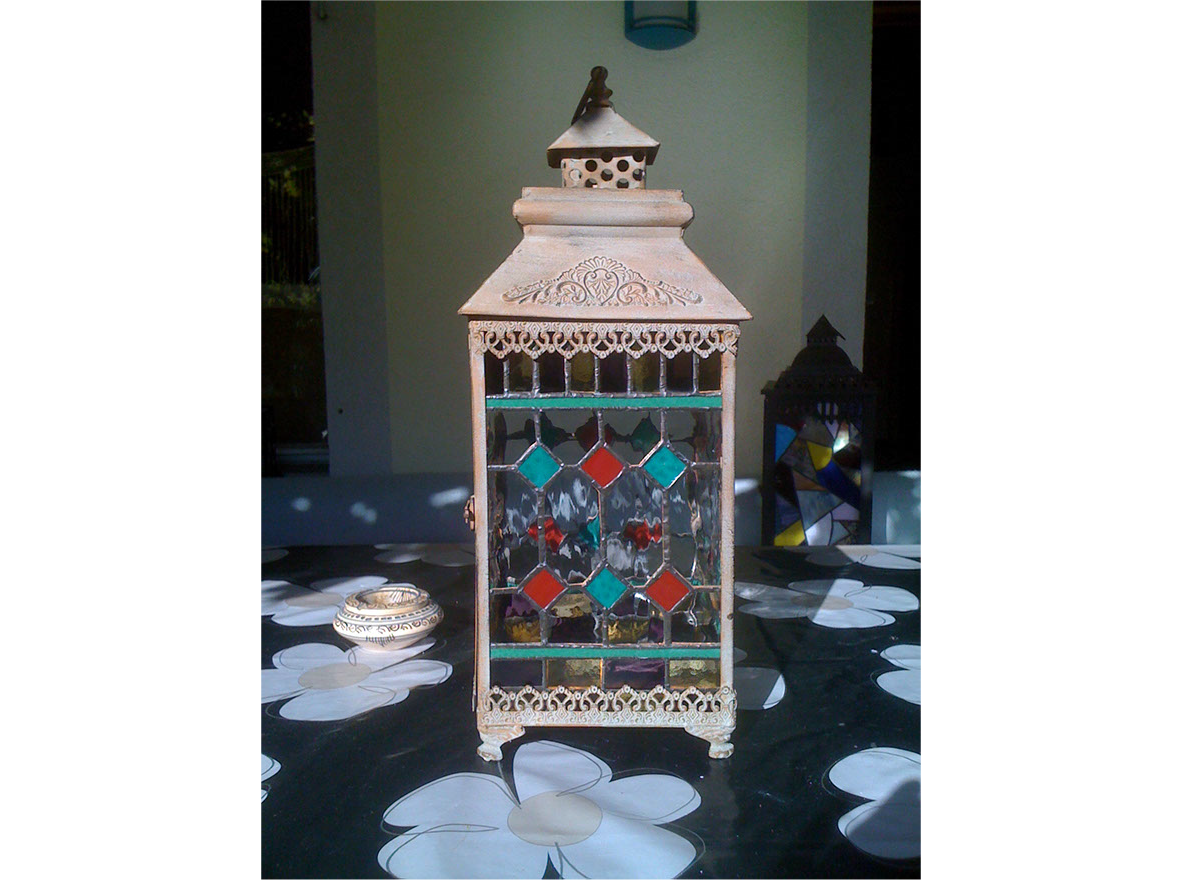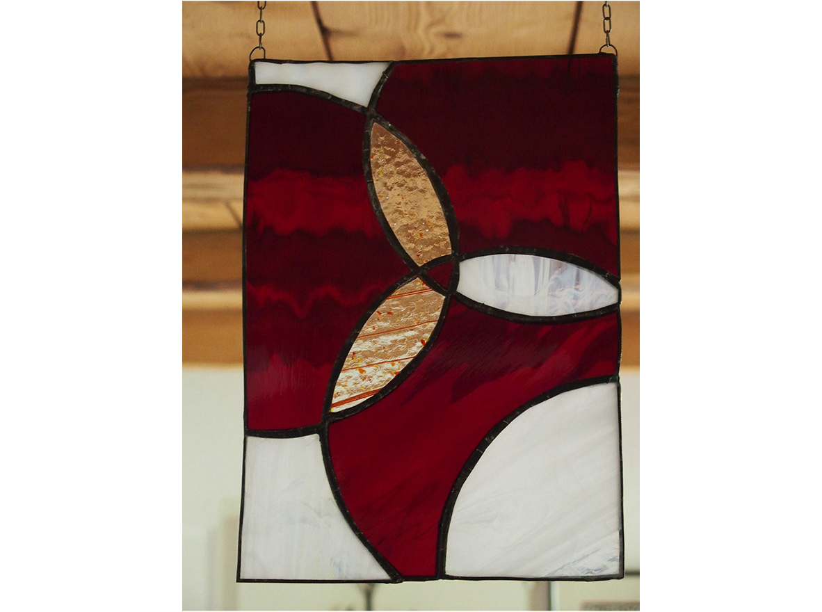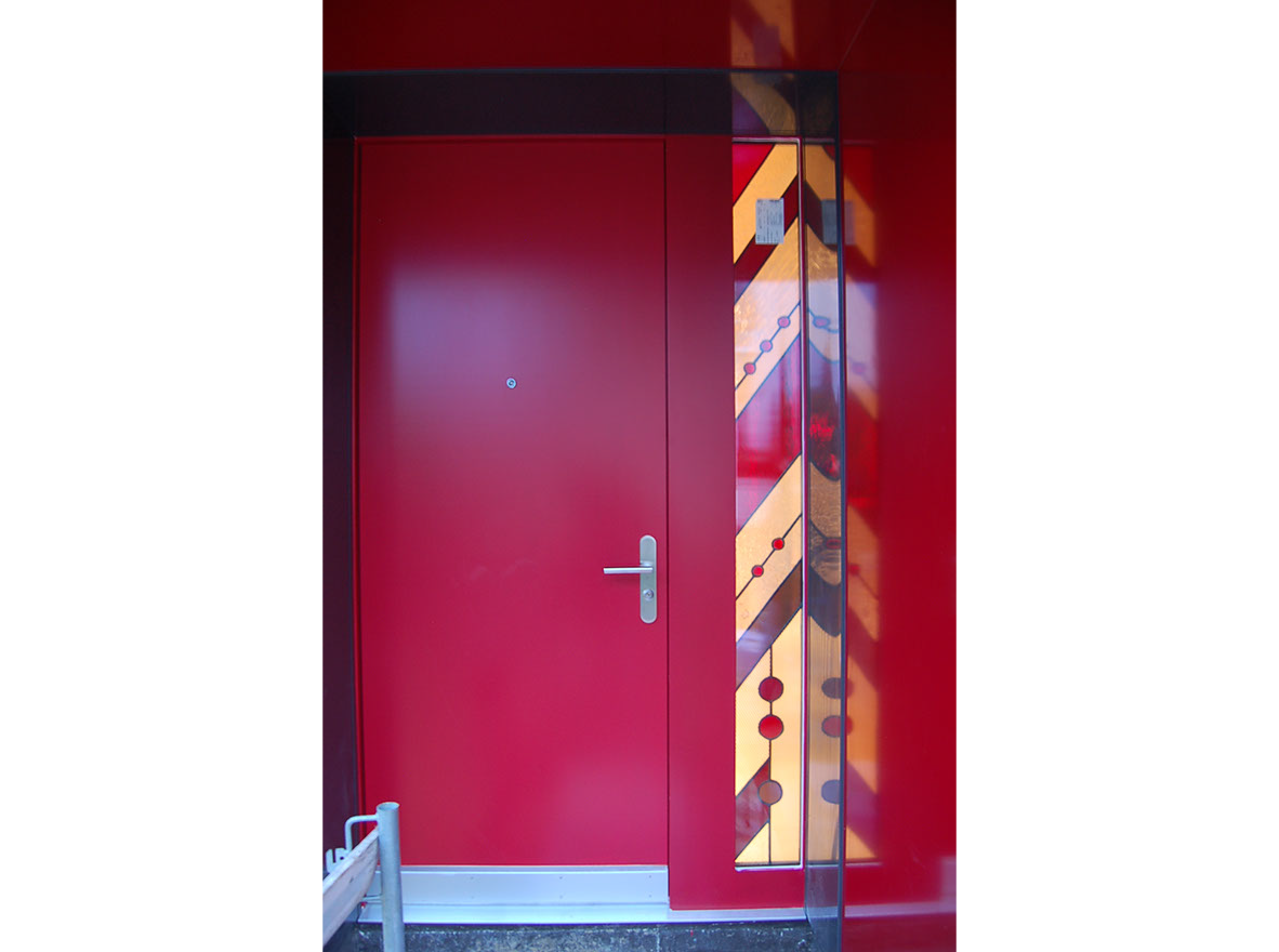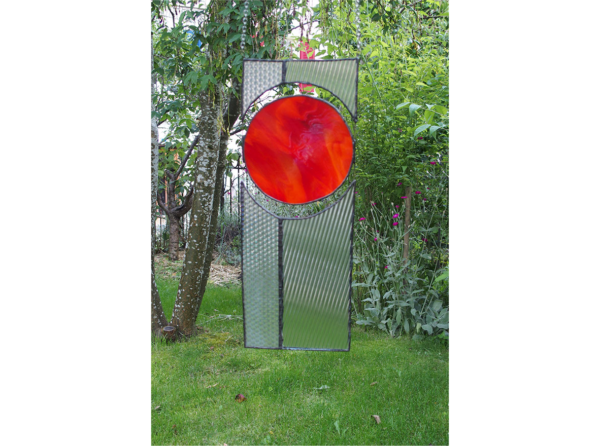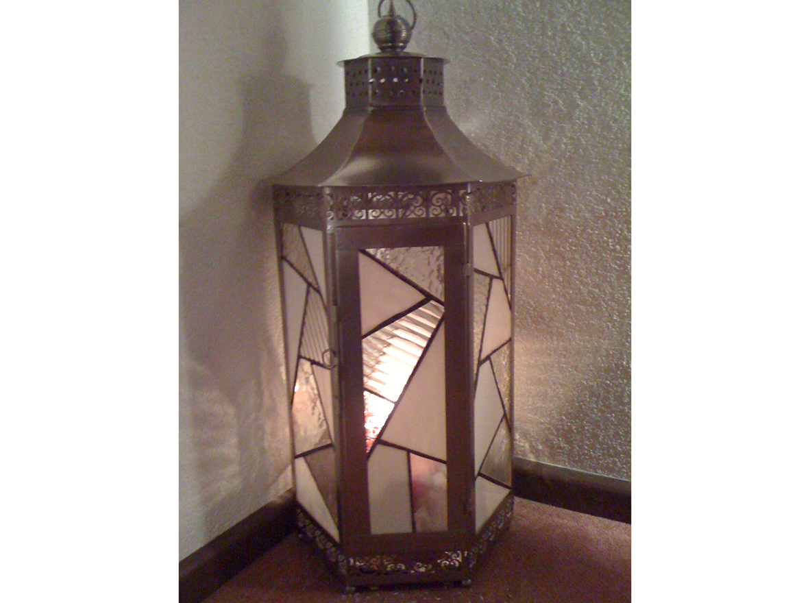 Le vitrail prend vie avec la lumière, dès que le soleil se couche, les lampes prennent