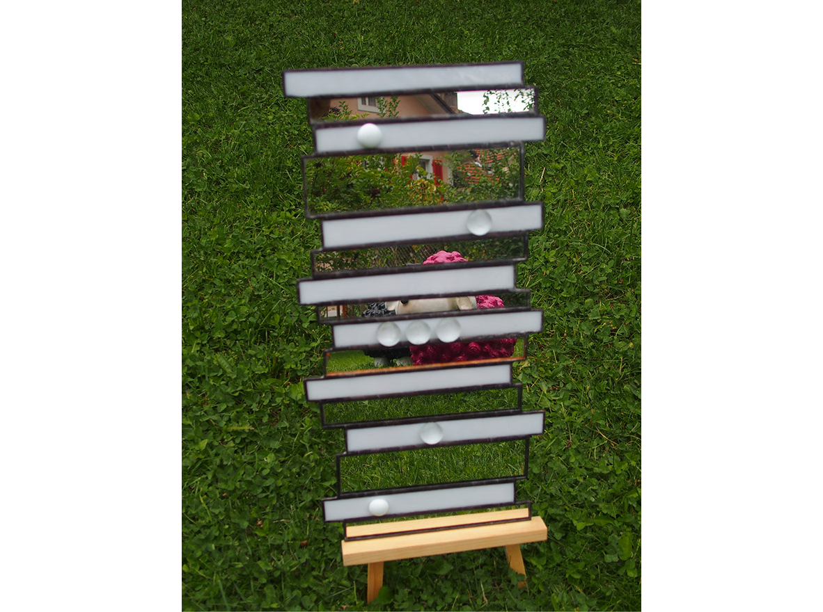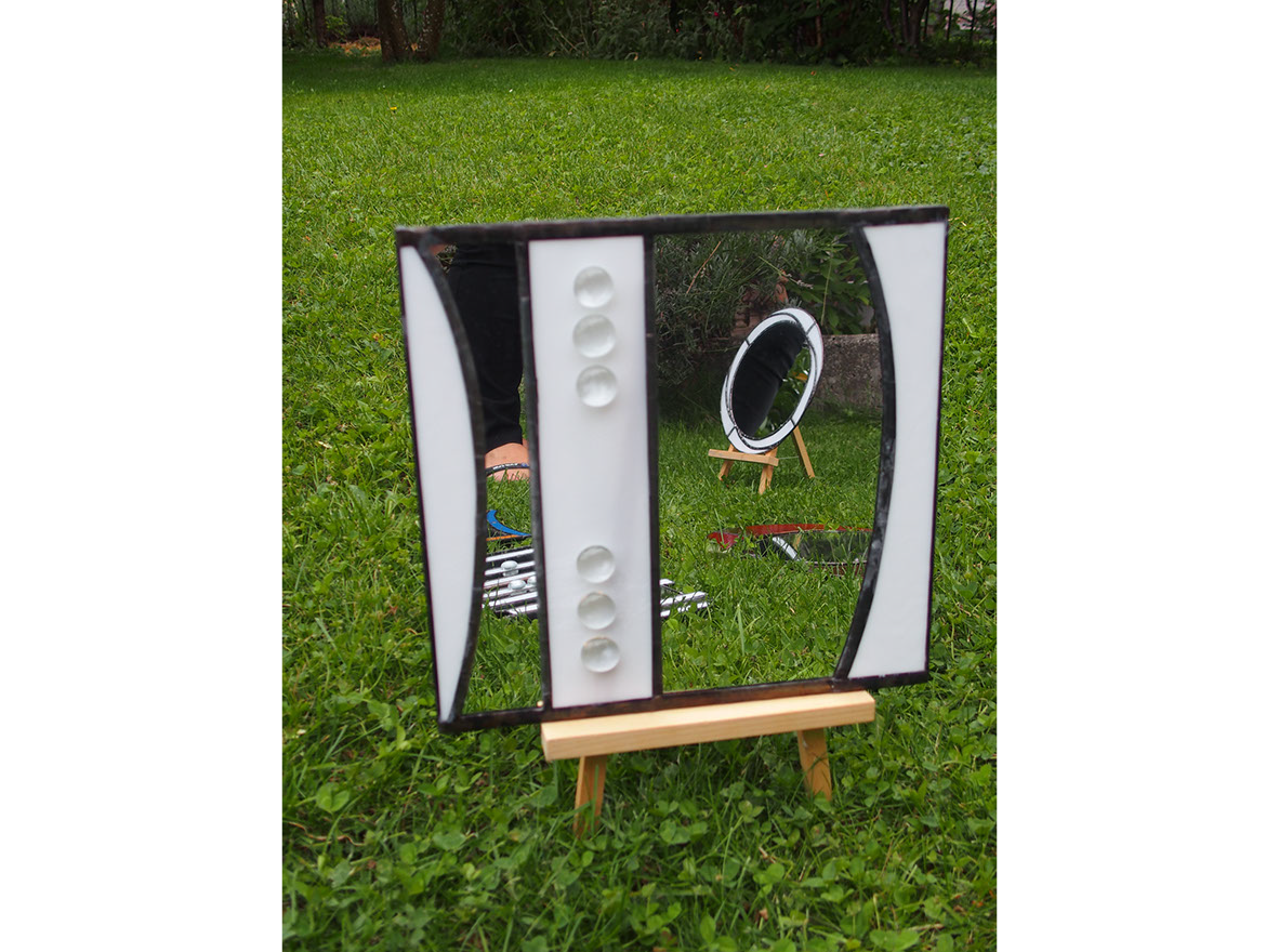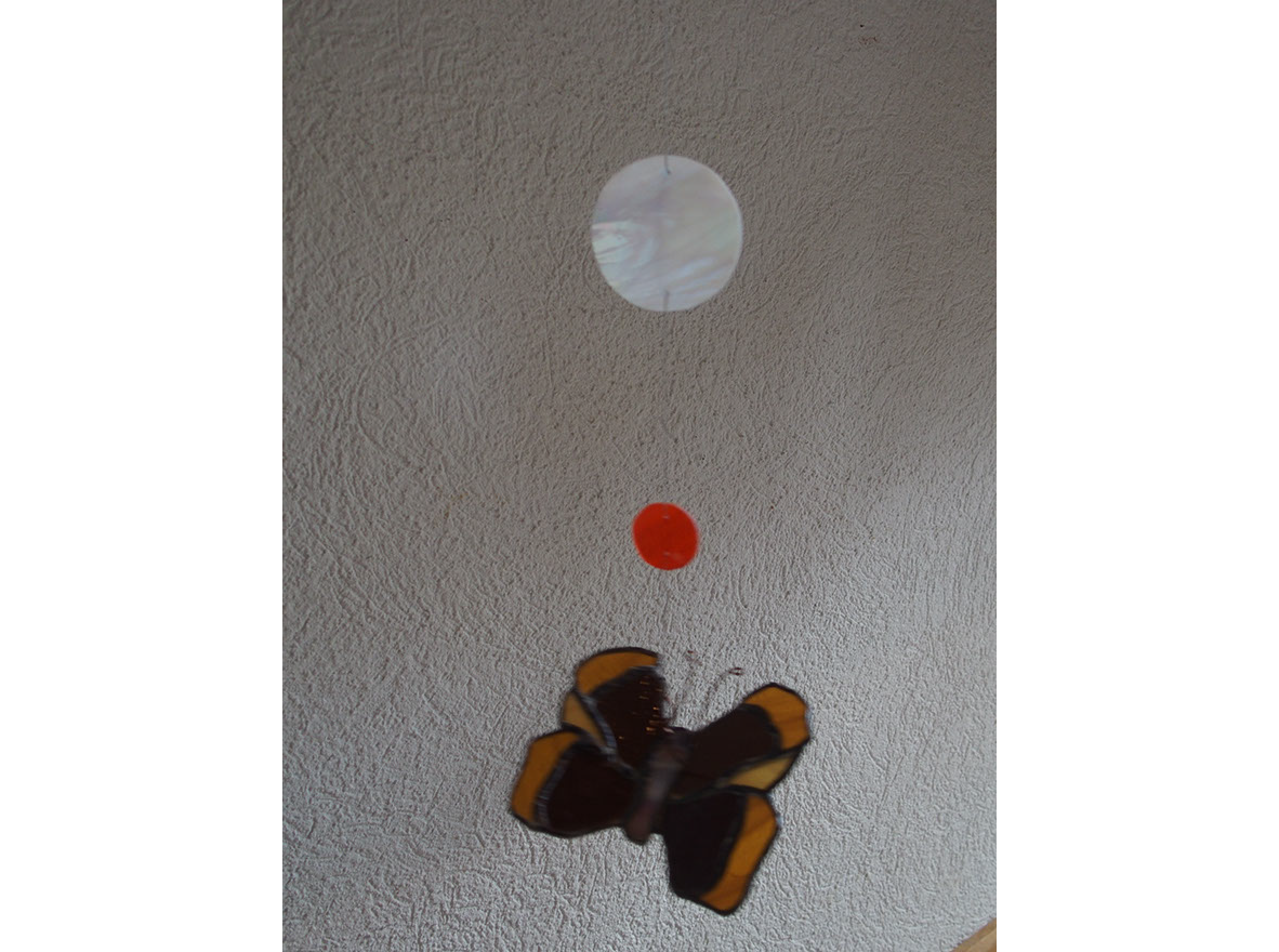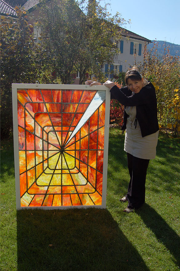 Des verres de première qualité "Uruboros-spectrum-cathédrale" associés à la lumière naturelle ou aux faisceaux des frères Lumière donnent à la pièce toute sa magie