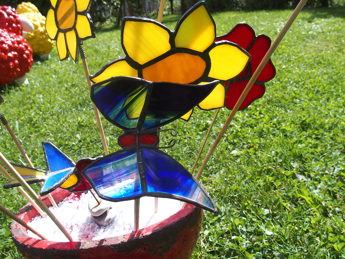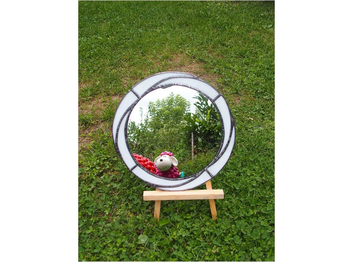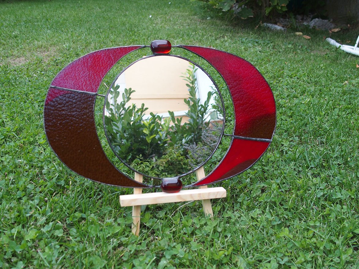Des verres de première qualité "Uruboros-spectrum-cathédrale" associés à la lumière naturelle ou aux faisceaux des frères Lumière donnent à la pièce toute sa magie